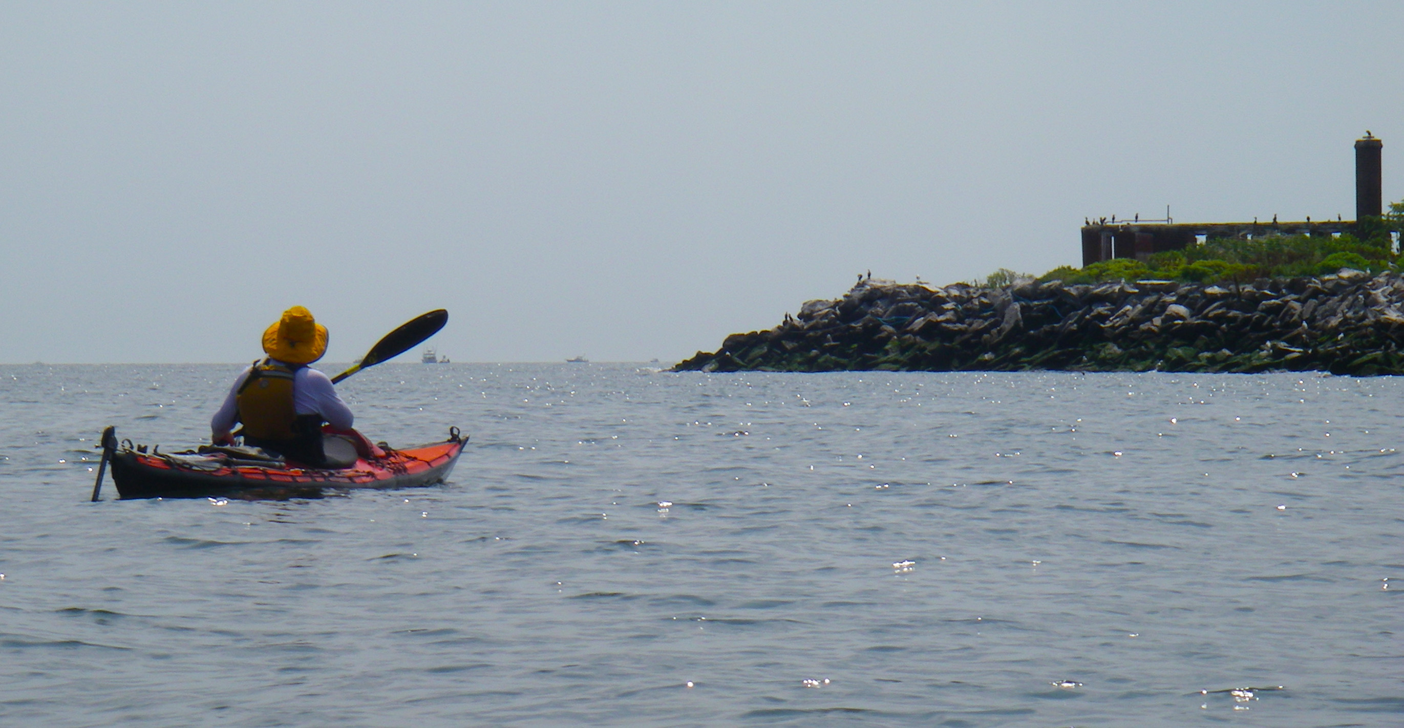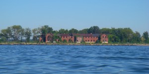 The book will never become a mainstream tourist guidebook, if only for one reason: although Seitz and Miller offer helpful suggestions, there simply is no easy way to visit many of the islands. Many were long ago acquired by government to house institutions of a certain sort—prisons, hospitals, quarantine, cemetery—and so are off limits, even when the ruins of the old buildings now serve only as bird nesting sites. In some cases the prohibition has real teeth (hint to kayakers: do not land to have lunch on Rikers Island…). Then, of course, many are true islands, accessible only by boat, but often now without any place where a larger boat could land… Plenty of places where a kayak can land, though! Inaccessible to most, with romantic histories and mysterious ruins in the undergrowth—these qualities make the islands irresistible for New York City kayakers. We’ve landed on many of the islands in this book and paddled past all of them—but before reading this book, without fully understanding what we were looking at.