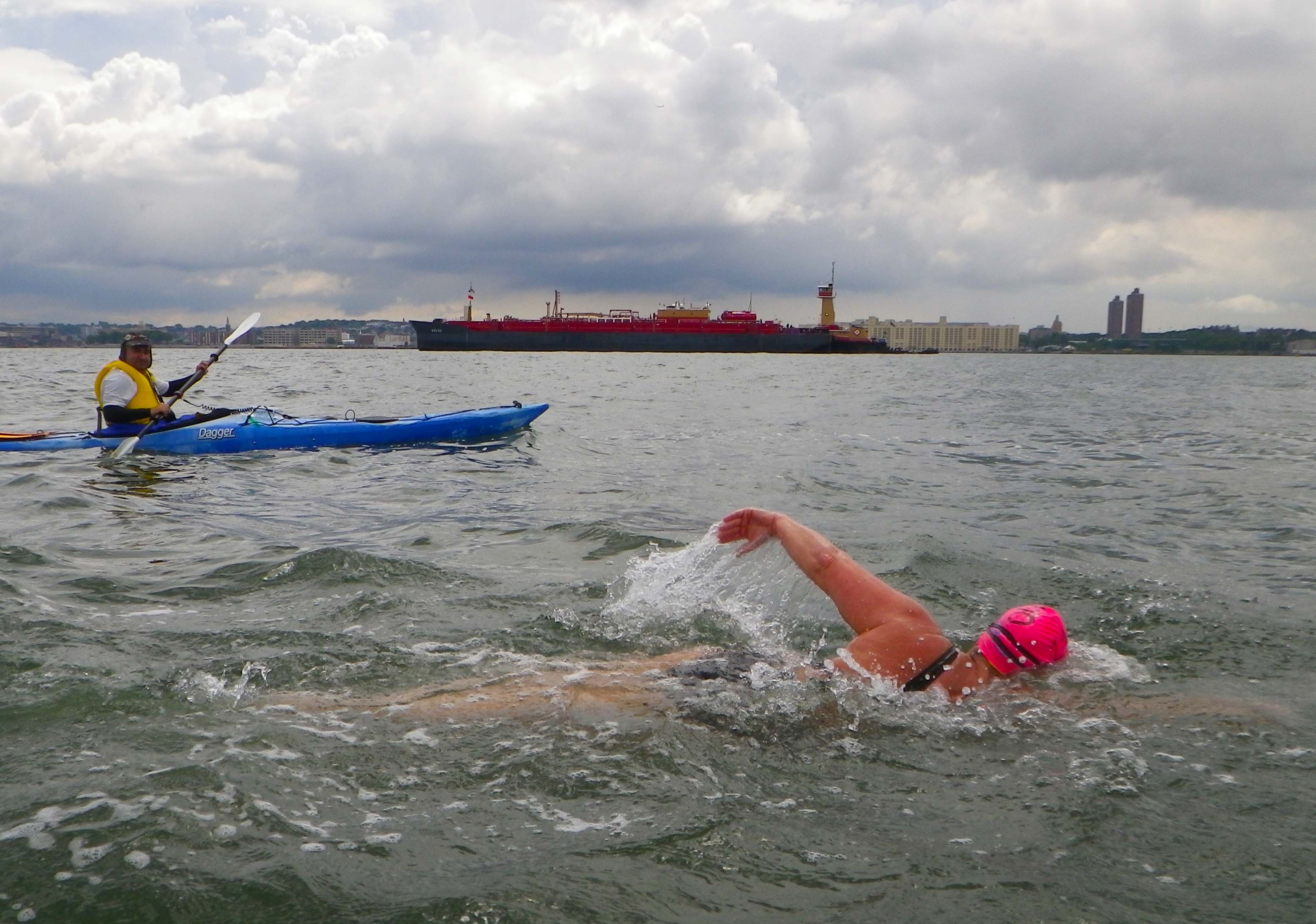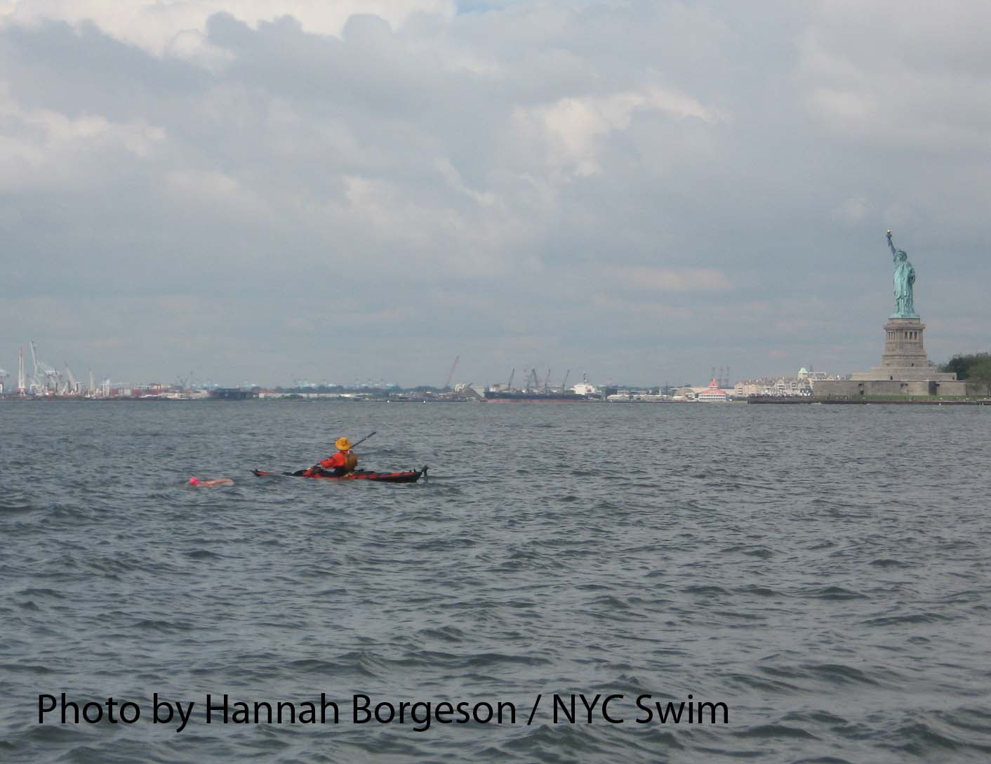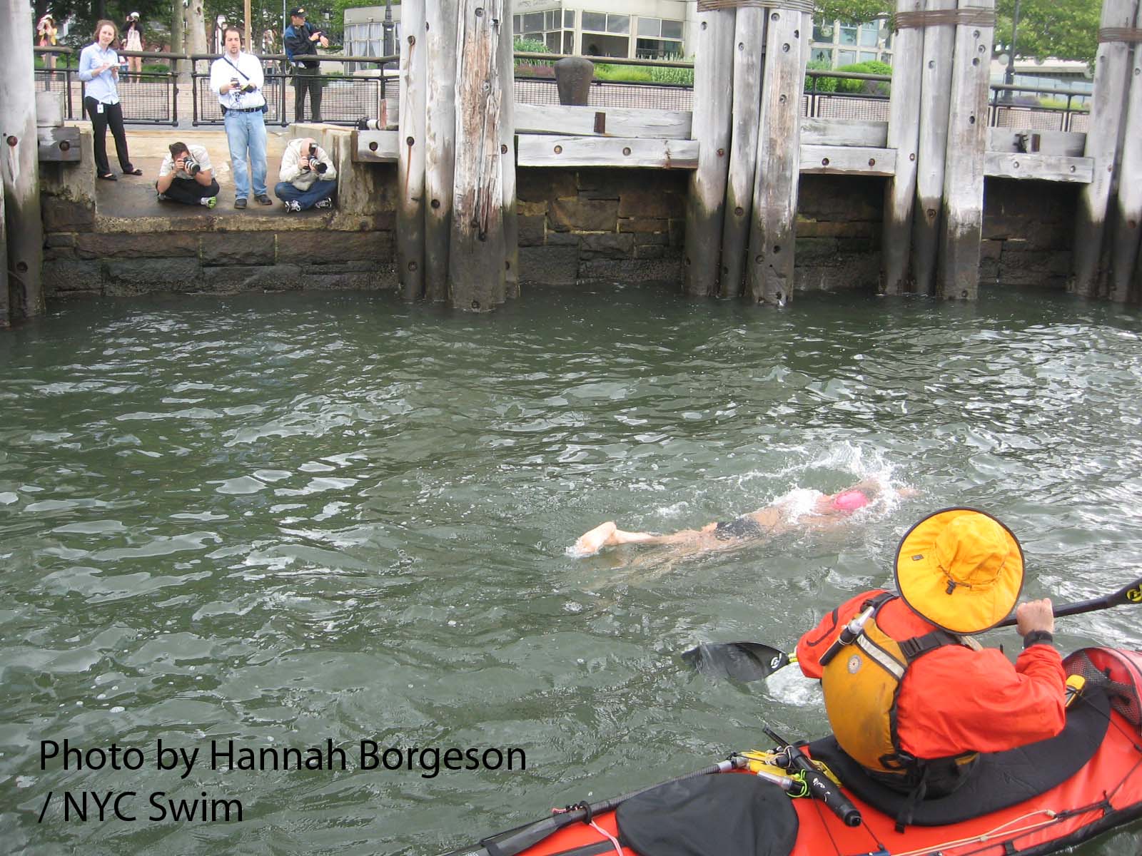 1.  After being interviewed by the media, Liz starts her swim at Gangway One of the Battery, at the southern tip of Manhattan, just after 9:45 a.m.
