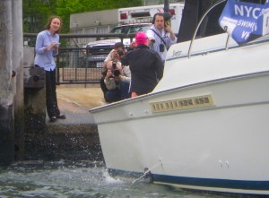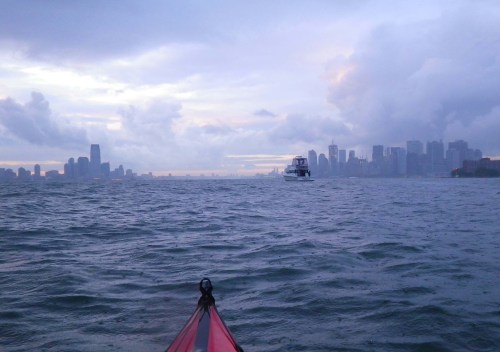 16. If you were following Liz’s track live, you might have concluded that Liz then swam up the Hudson, and she was certainly capable of it! But you can’t believe everything that you see on the Internet. The entire GPS track is actually the track of my kayak, to which the SentryGPSid device was attached, and Sergio and I paddled up to Pier 40 after the swim…