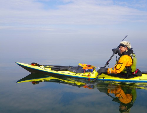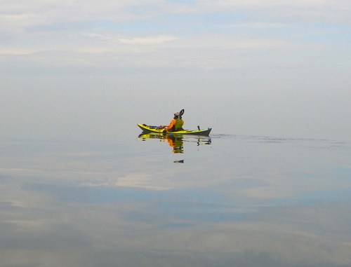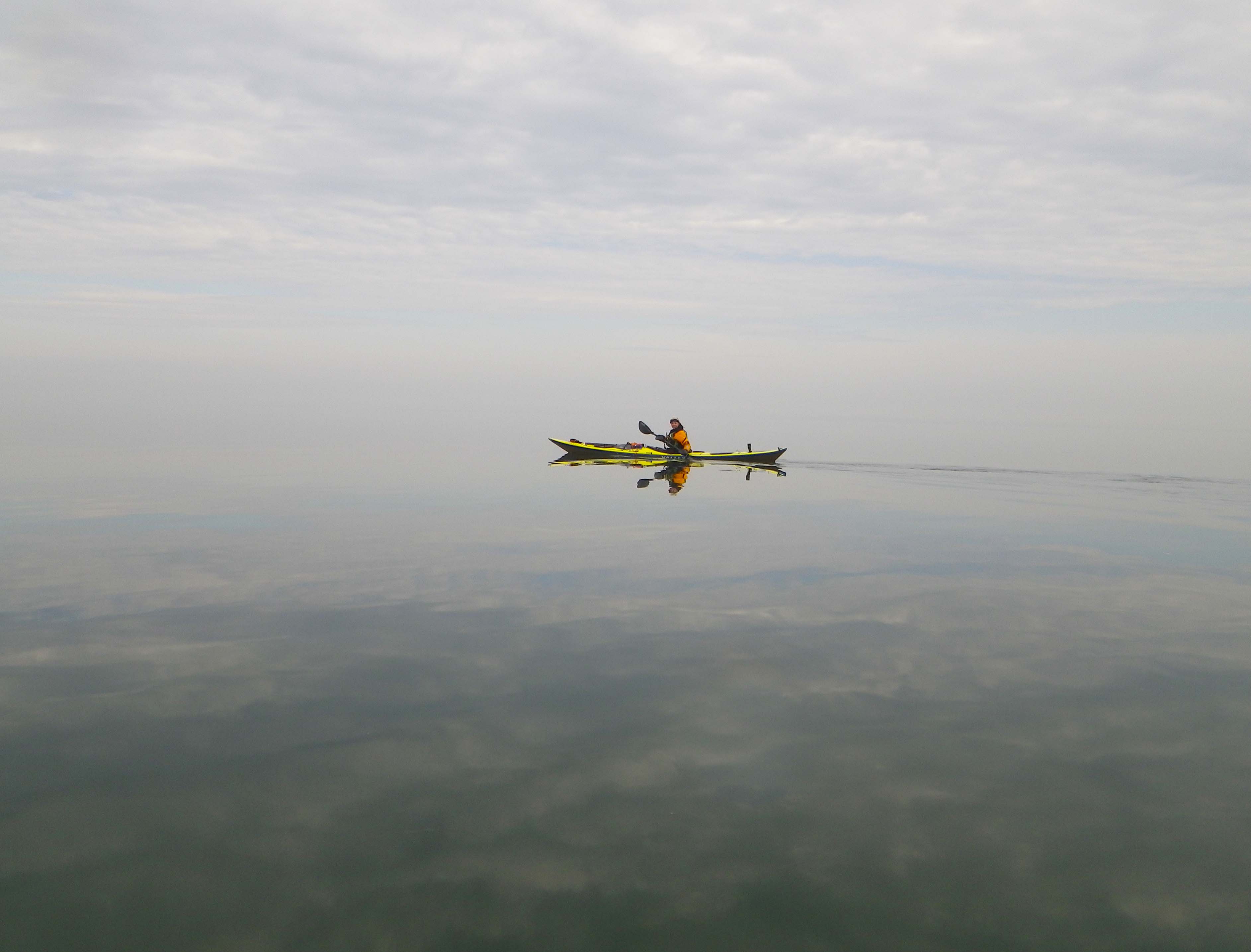 , but some of the most magic moments in a kayak on the open sea come when the wind dies down completely and the calm sea joins with the sky…