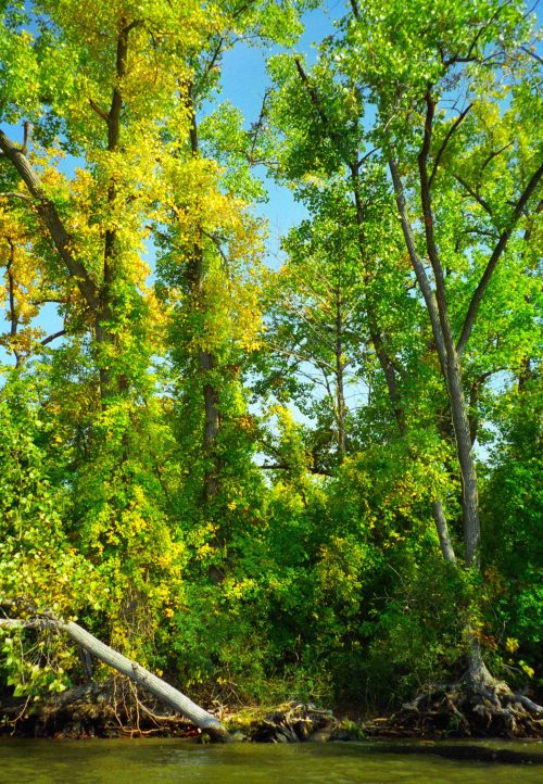 In New York City, the trees remain green, with no sign of fall color yet. But the city is an urban heat island, with temperatures elevated often by ten degrees or more. Outside the city, no doubt, leaves are already starting to turn. It’s time to plan fall foliage trips—by kayak, naturally!