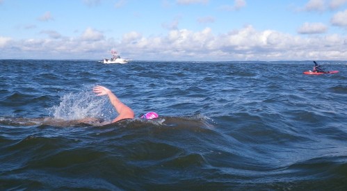 I was one of the kayakers accompanying both Liz and Lance on these swims (see my writeups and photos here and here).