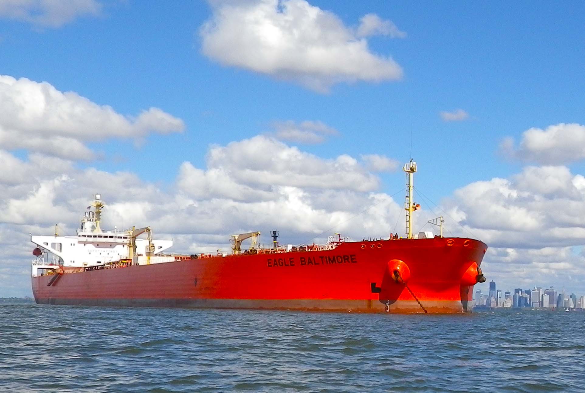 6. Just past the bridge, the current was pushing us toward a huge orange tanker, the Eagle Baltimore—the first of many vessels anchored in the Upper Bay that we had to maneuver around. We went around the back of the Eagle Baltimore