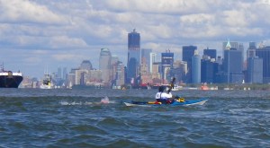 So the Sandy Hook-to-Manhattan record of 5:24:52 now belongs to Evan Morrison, while the Manhattan-to-Sandy Hook record of 4:01:07 belongs to Lance Ogren. The difference between the two times reflects, in large part, the different speeds of the flood and ebb currents in the harbor. When kayaking, too, the trip from Manhattan to Sandy Hook is at least an hour faster than the trip back.