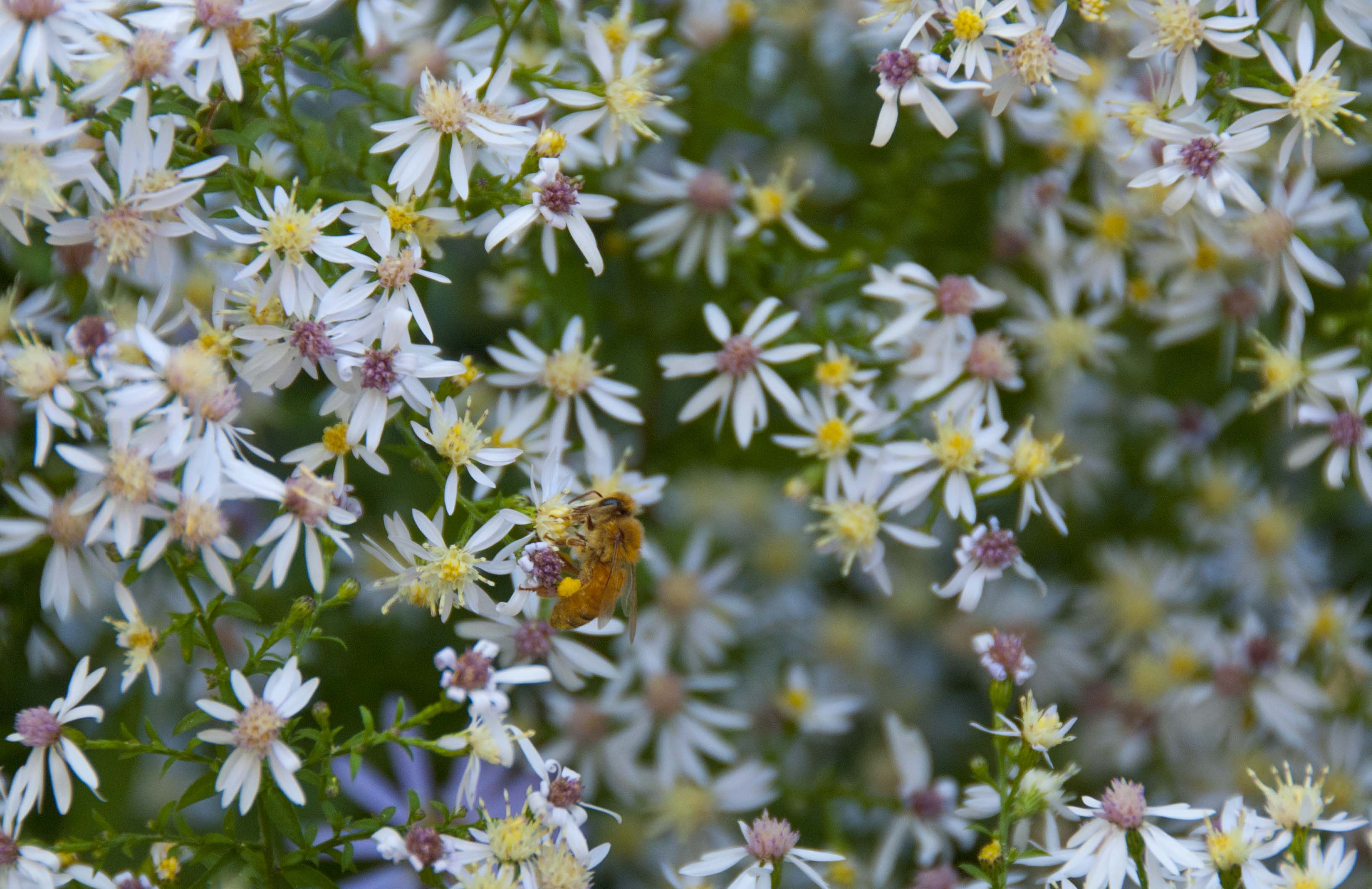 This past weekend was beautiful: dry, calm, sunny and warm—Indian Summer weather. In New York City’s Central Park, still mostly a fall-denying green, a fresh crop of flowers was out. And the park’s bees and butterflies, like the city’s human inhabitants, were out in force.
