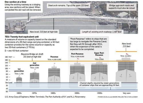 There are still other options, of course. One obvious one is to move the container port, or at least the part of it that will handle the largest ships, to a different site where it will no longer be obstructed by the Bayonne Bridge—for example, to Bayonne’s old Military Ocean Terminal. There are some signs that the Port Authority is considering moving in that direction. But it’s very true that the maneuvering behind the scenes for and against the various options is very hard for the public to penetrate.