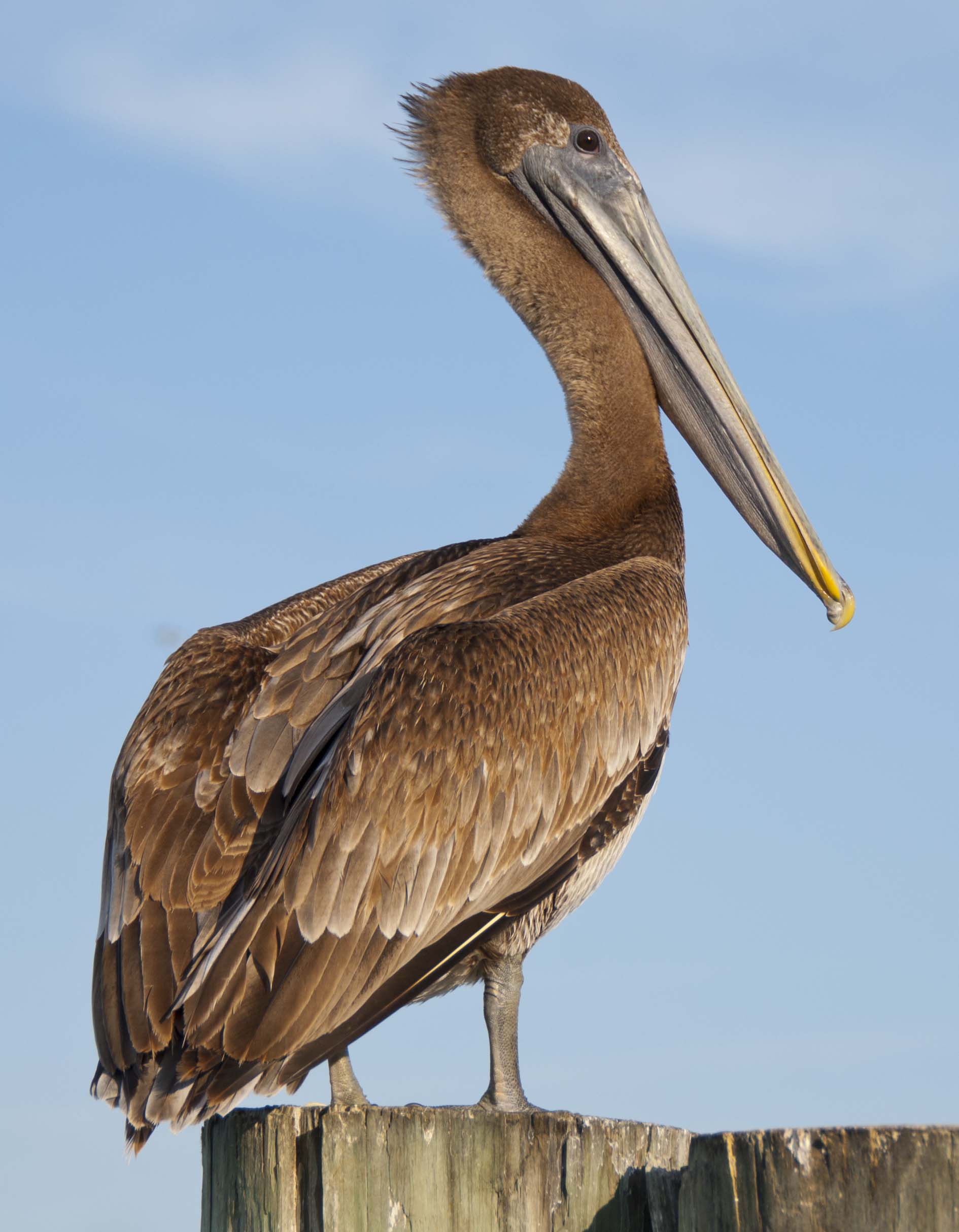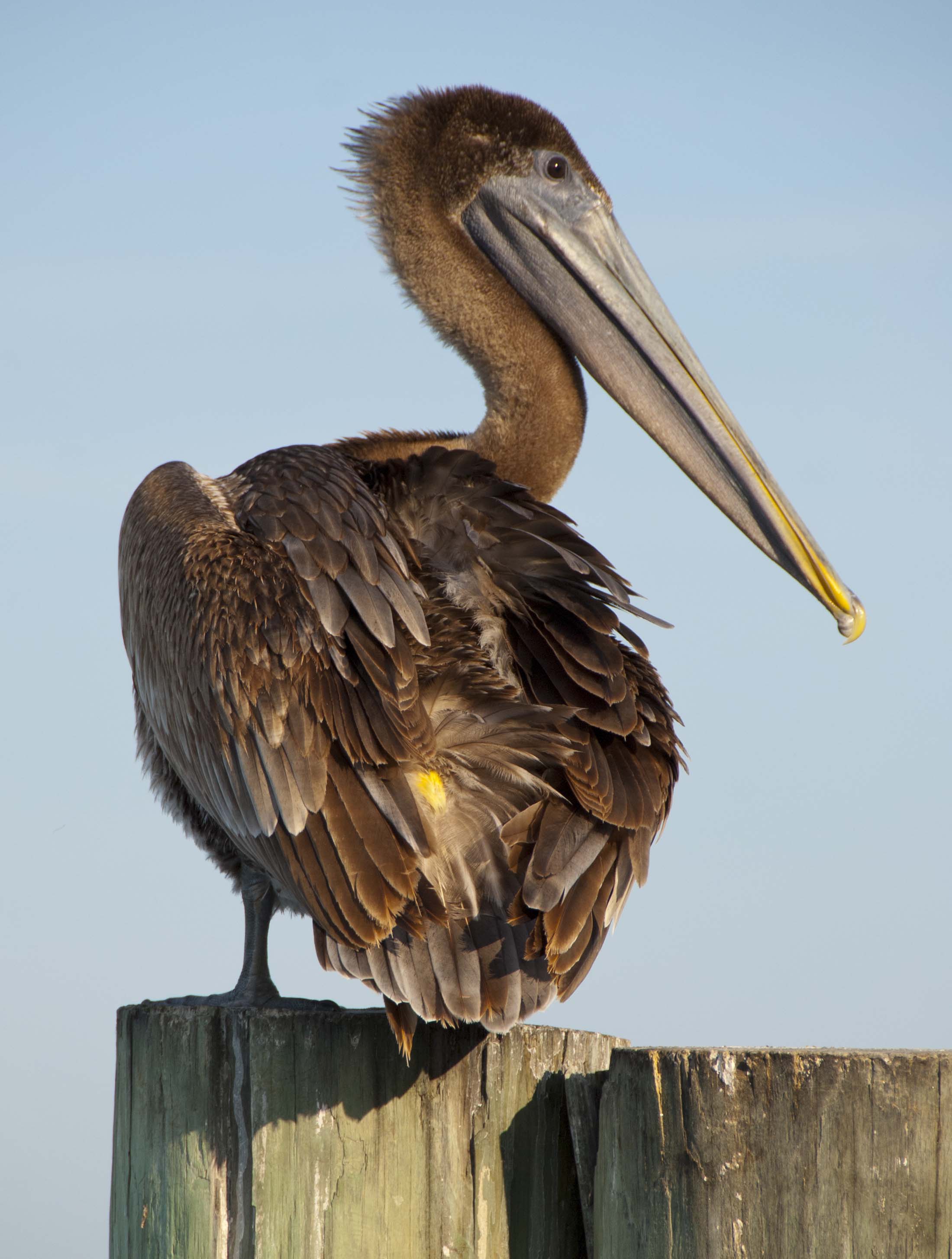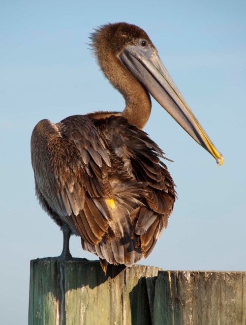 Every time I travel south, I look forward to seeing pelicans once again. Some birds are just irresistibly idiosyncratic, and pelicans are. (Herons and egrets are, too.) Everything about them is fascinating to watch…