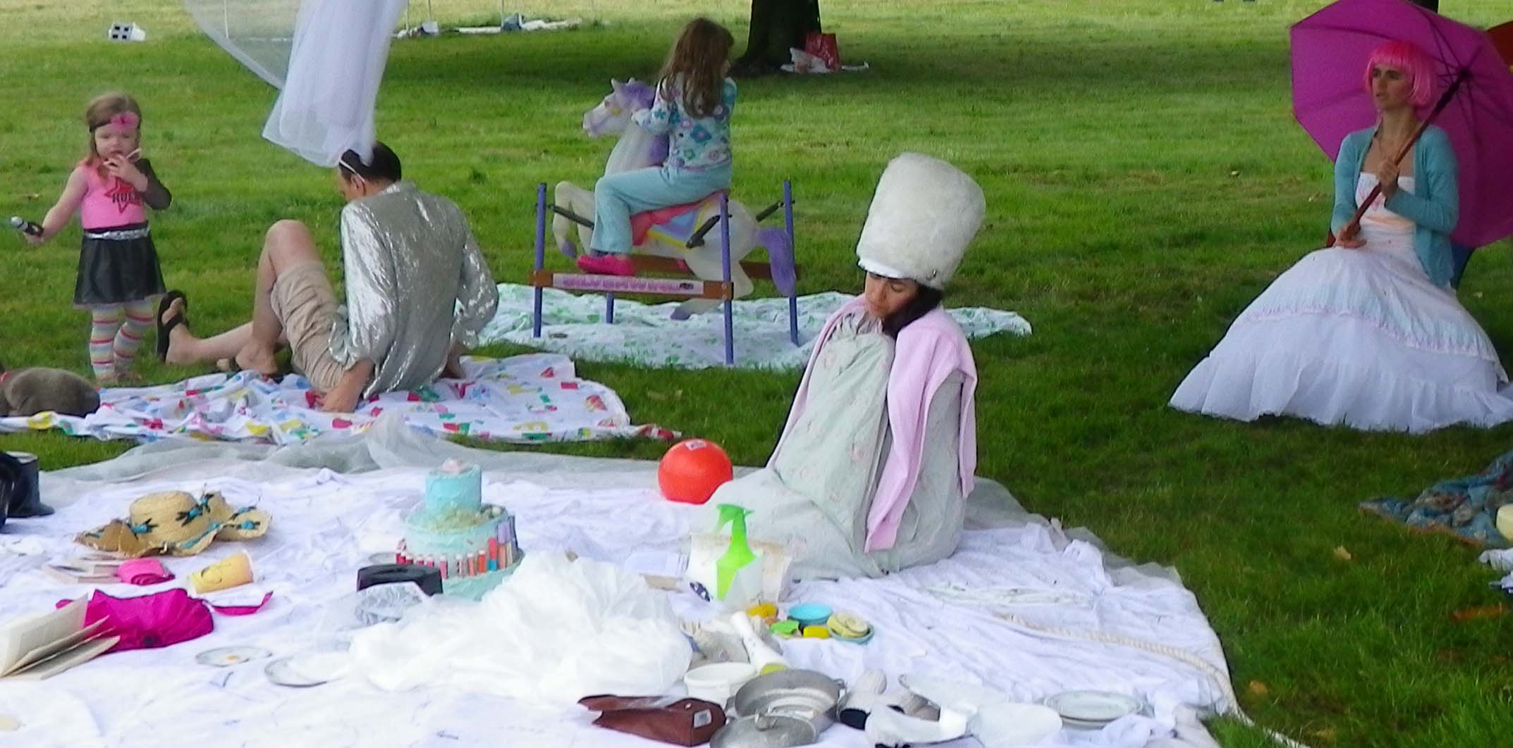 Unfortunately, it rained pretty steadily the whole day of our visit. Consequently the Imaginary Picnic was a bit wilted. But its full glory can be seen here: