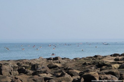 And now, sorry!—no photos for the next four hours. But here’s a representative photo, taken from land by David Cox during the 2010 Challenge, from the blog GoodMorningGloucester.