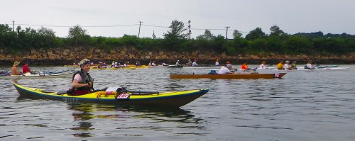 How long does it take to complete the course? Here are the 2011 results. The fastest boat—a sliding seat racing double—finished in 2 hours, 26 minutes, and 21 seconds. The fastest single “high performance” kayak—a surf ski—took 2:34:24, the fastest single “standard” sea kayak 3:21:08. The slowest of the 245 boats to finish, actually a paddleboard, took 7:32:25. So if you paddle a sea kayak reasonably fast, you won’t be last!