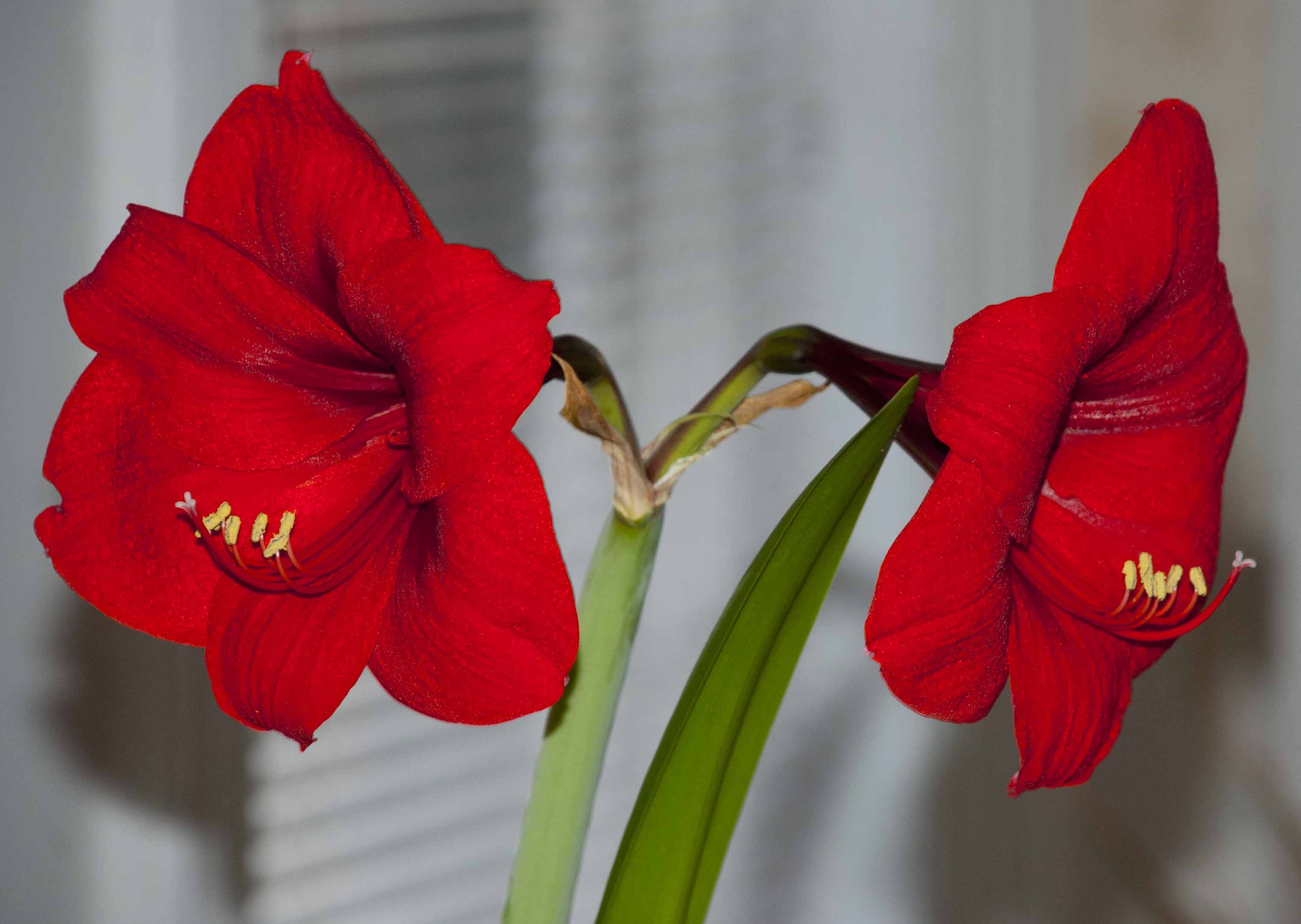 2. Love the photos – great intense red! I used to have a collection of amaryllis, until I left them out in a hard frost :-( If you have a balcony, they like a summer outdoors with extra food, then a trip to a dark closet in mid to late September to force dormancy, then back in the light in early December. Its hard to get them to bloom at Christmas but mine usually bloomed in January with this routine. Still, an unexpected bloom in April/May is a nice treat!