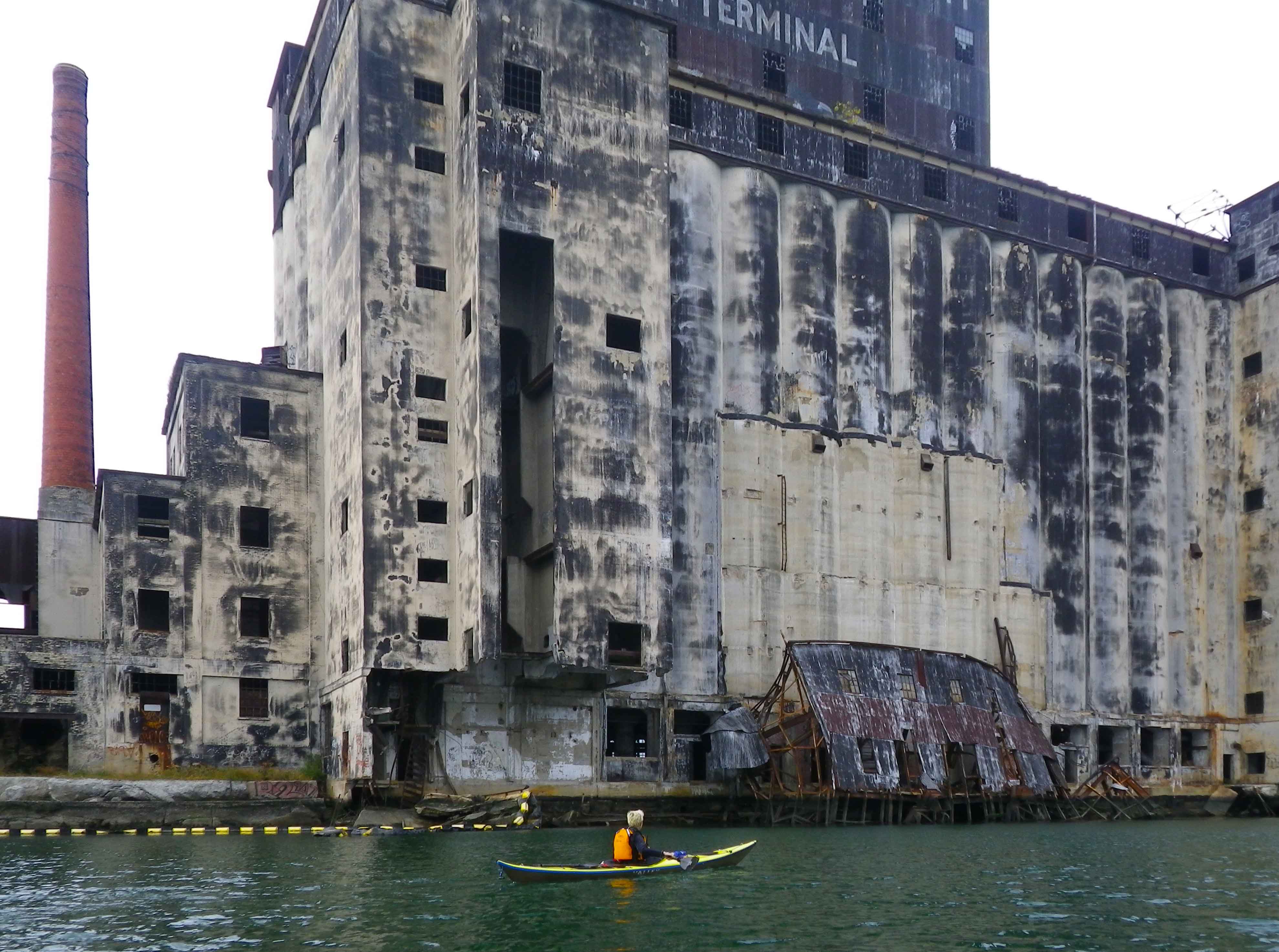 4. fab photos, love the shapes and colours of the industrial buildings with the delicate kayak like a dragonfly on the water!
