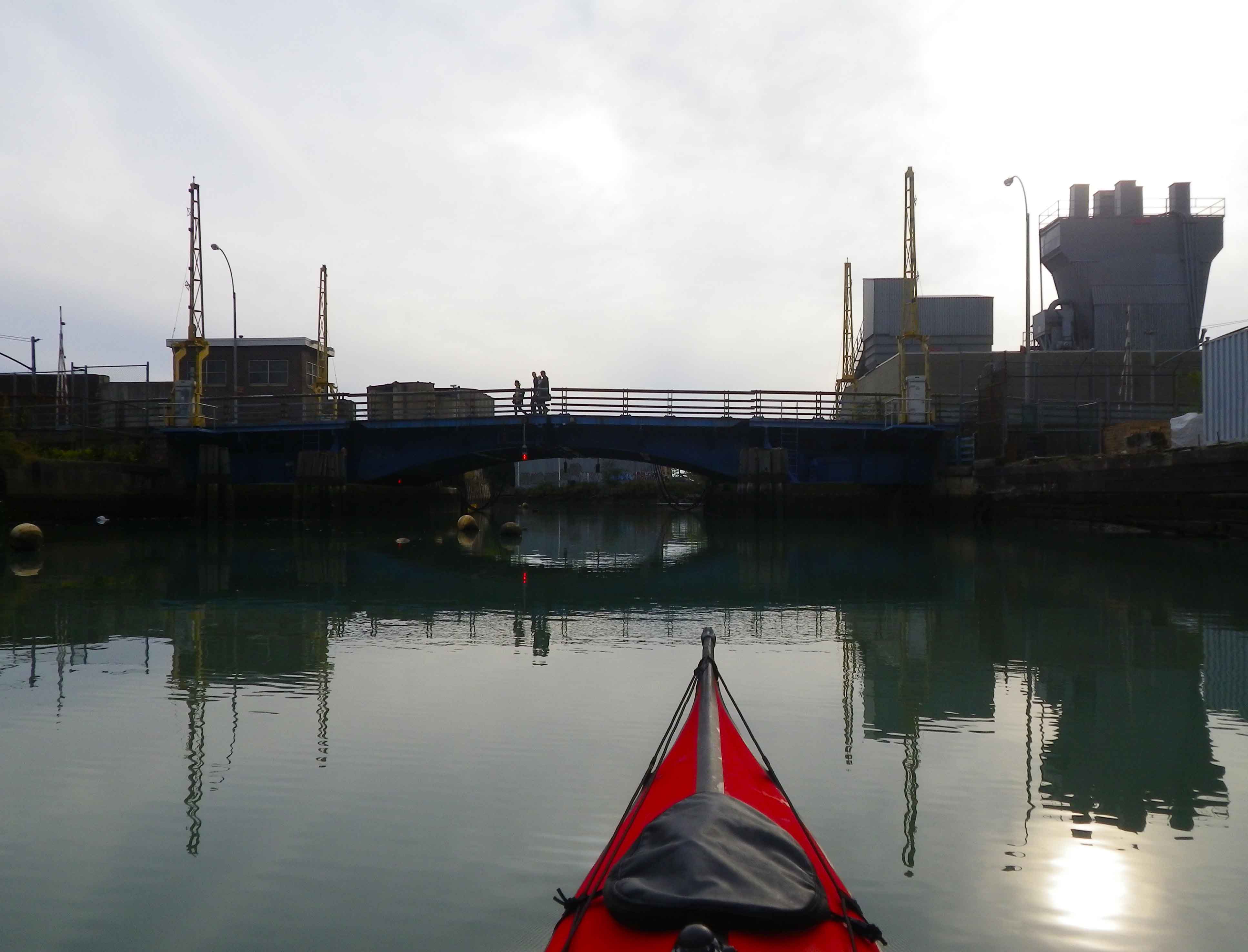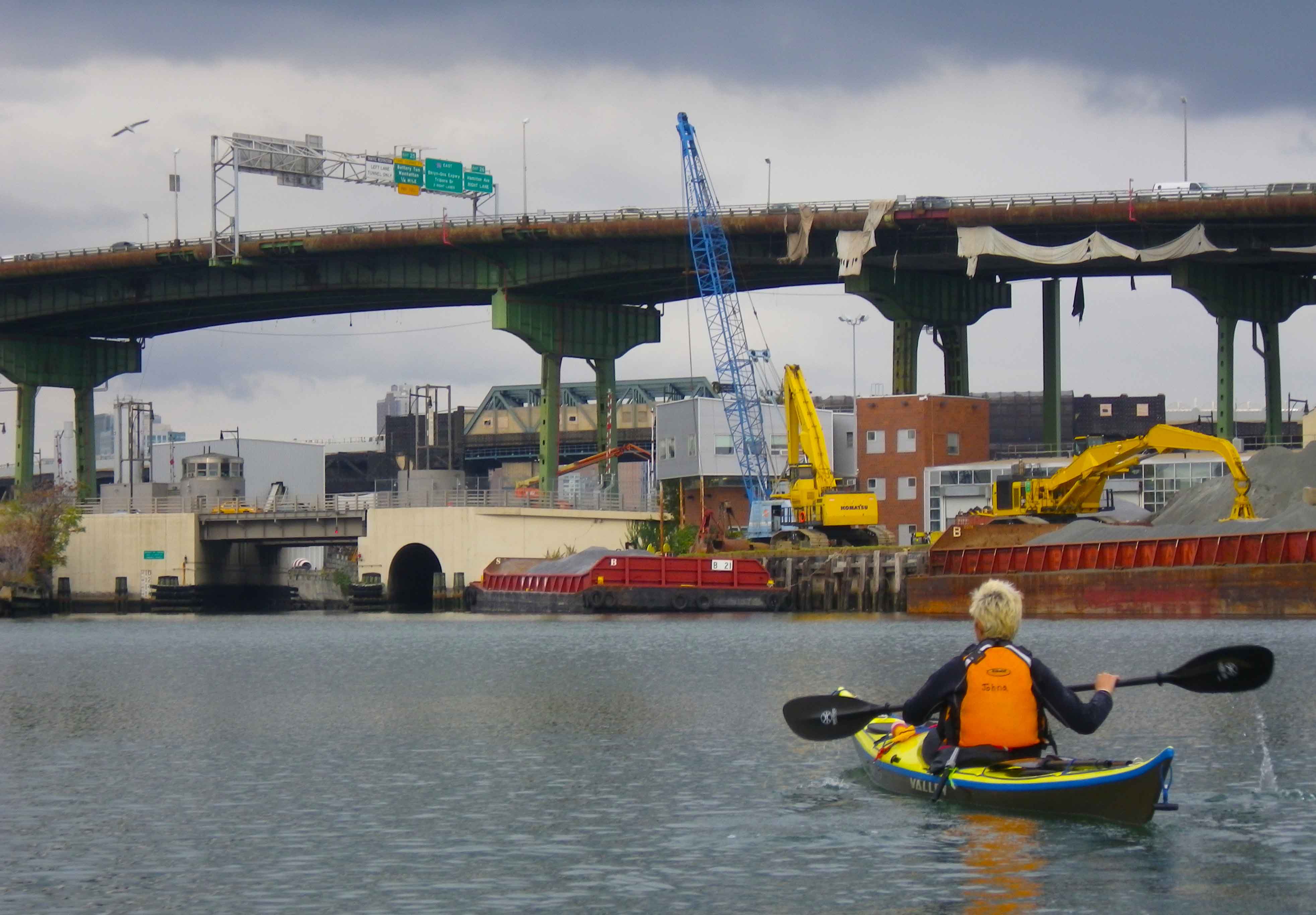 Paddling through New York Harbor, the ecosystem that we observe is not Nature, but Industry. Where elsewhere we might hope for close-up sightings of animals coming down to the water’s edge, in the harbor we observe the raw workings of industry. Industrial enterprises line the  banks and occupy the scraps of waste land in the corners of the harbor. They present their best faces to the land, but as we paddle past, through, and sometimes even under them, we peer into their back yards…