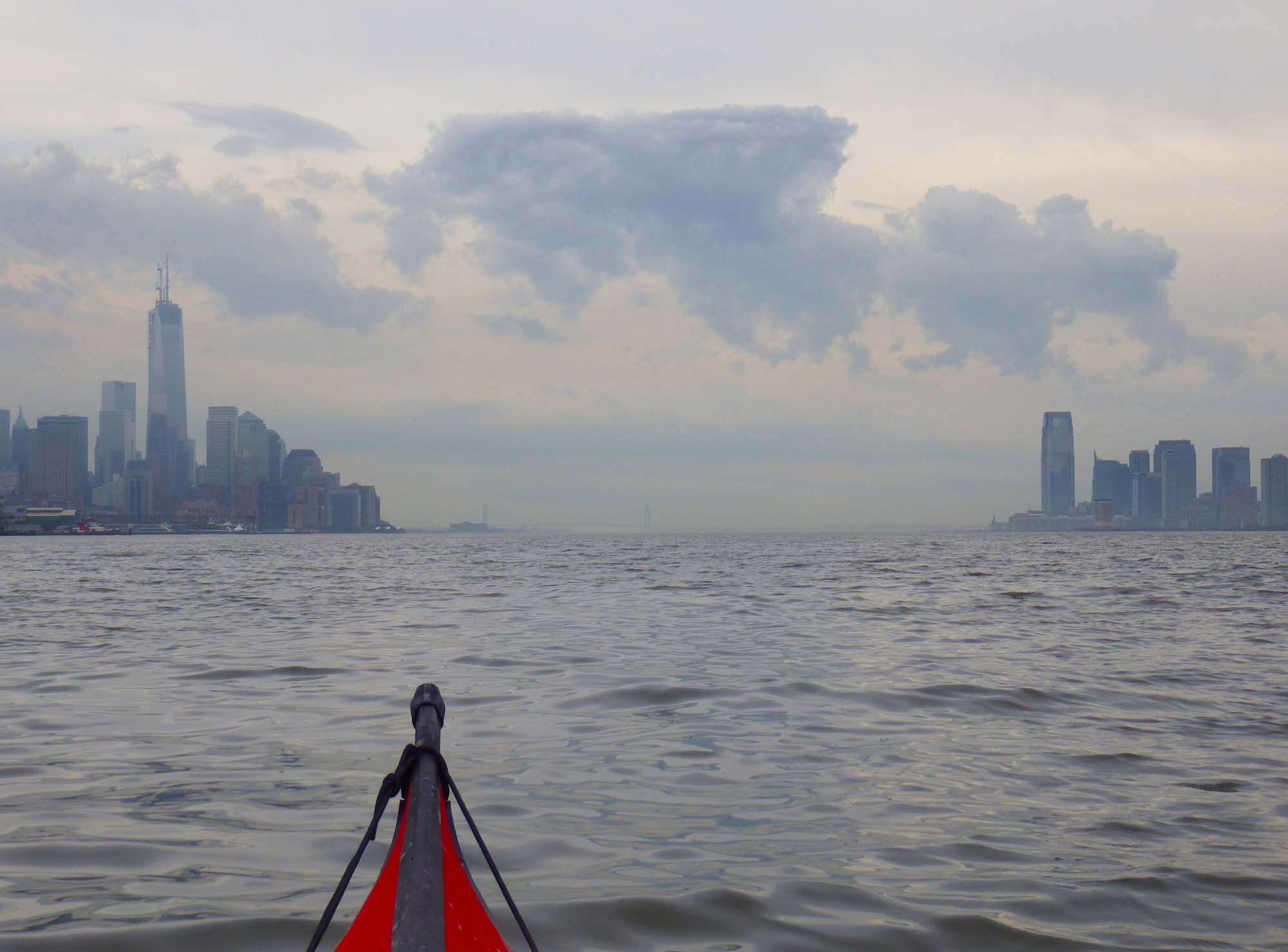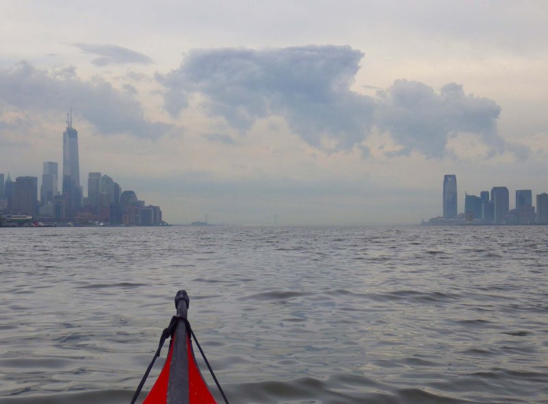 Far ahead, we can see a tiny Verrazano Narrows Brige