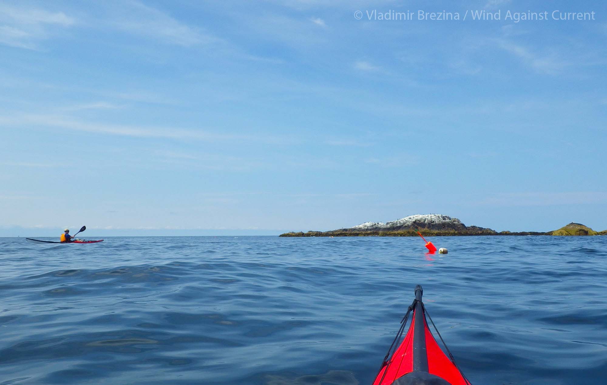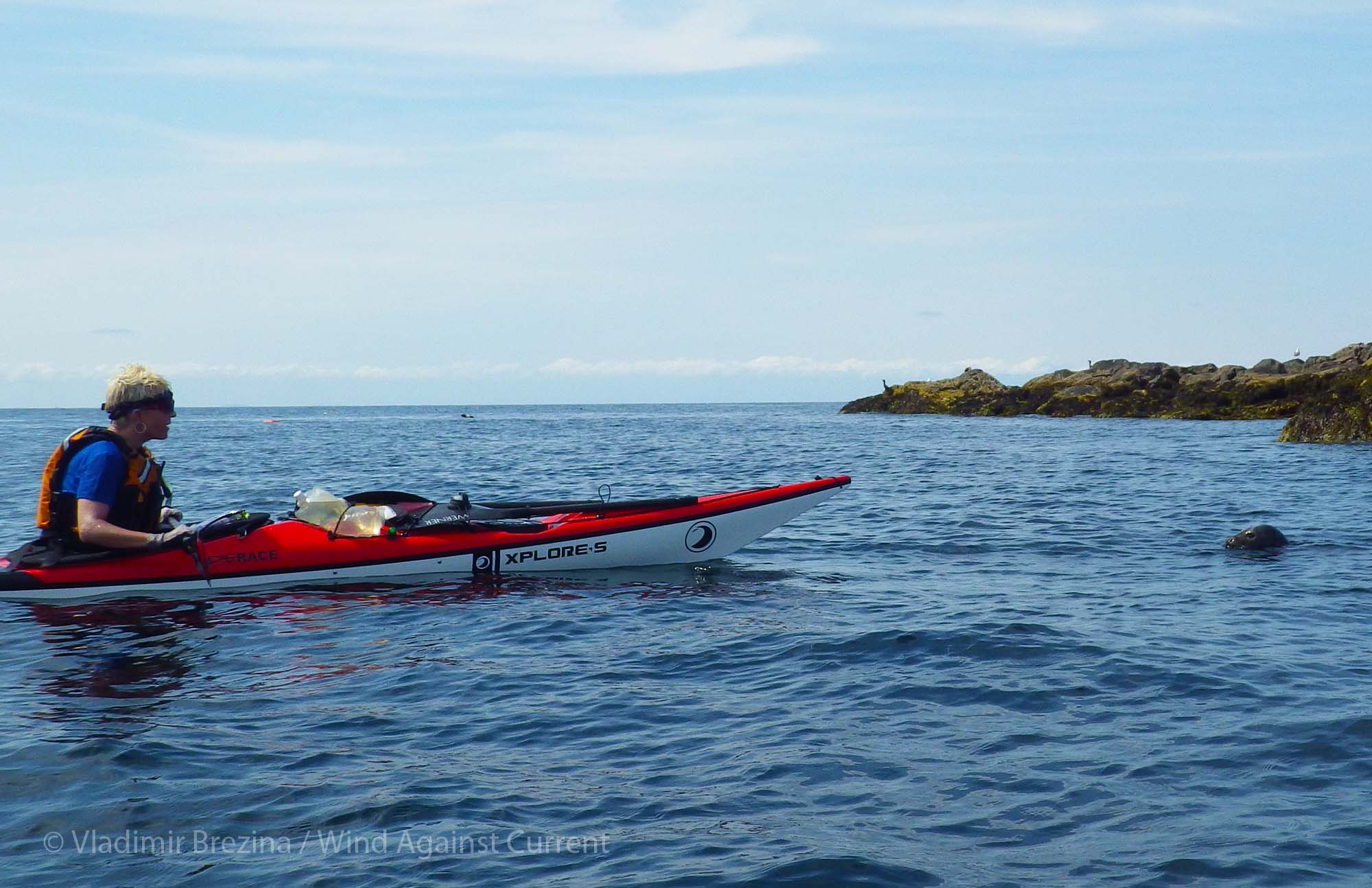 The blue sea and sky, surf-beaten offshore rocks, wrecks, birds, seals… Clearly, T.S. Eliot knew what he was about. Quite apart from their literary connotations, the Dry Salvages are a kayaker’s paradise!