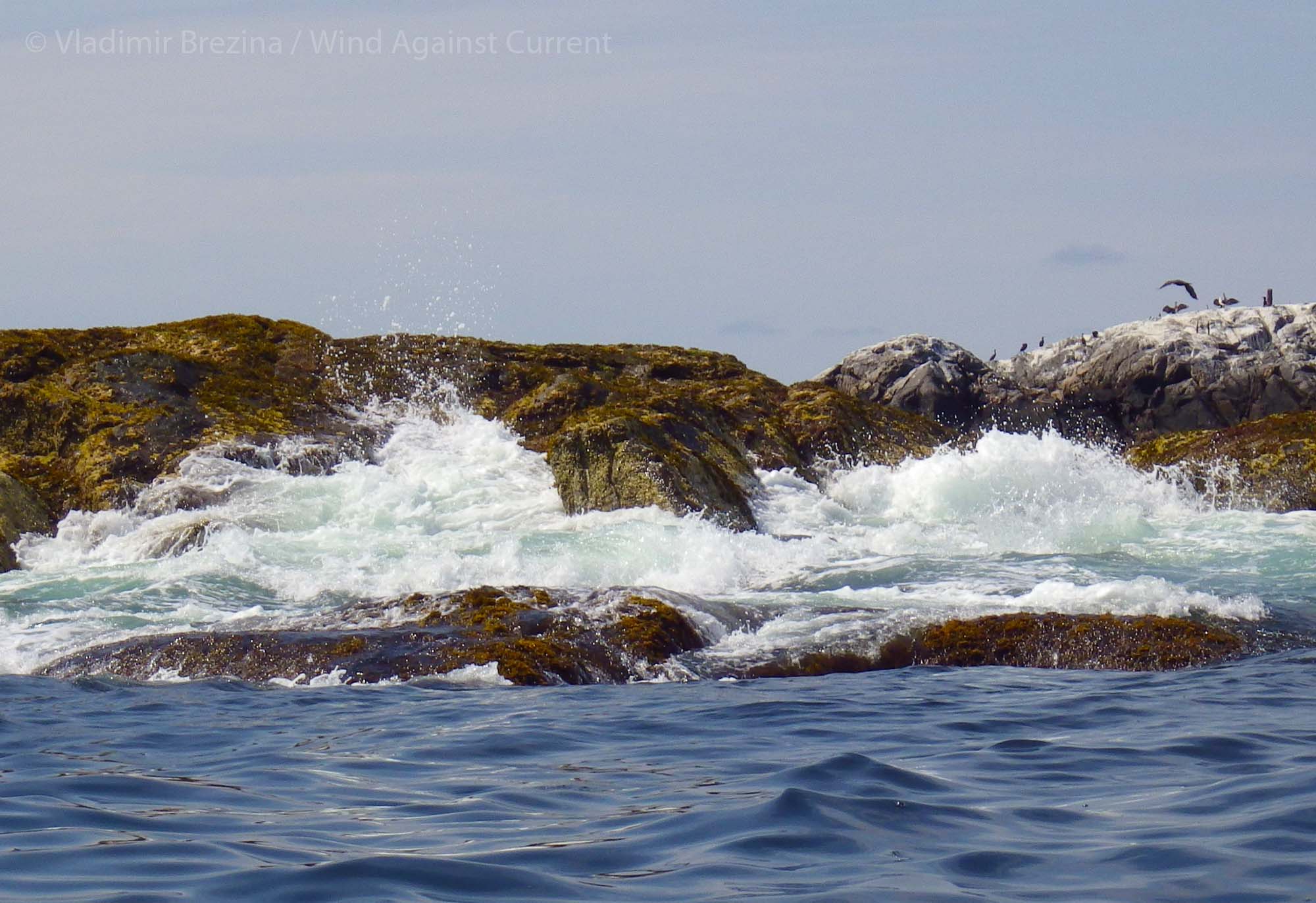 Surf beat on the outlying rocks. And the rocks were just the right distance apart, with “interesting” water between them, for some fun rock gardening…