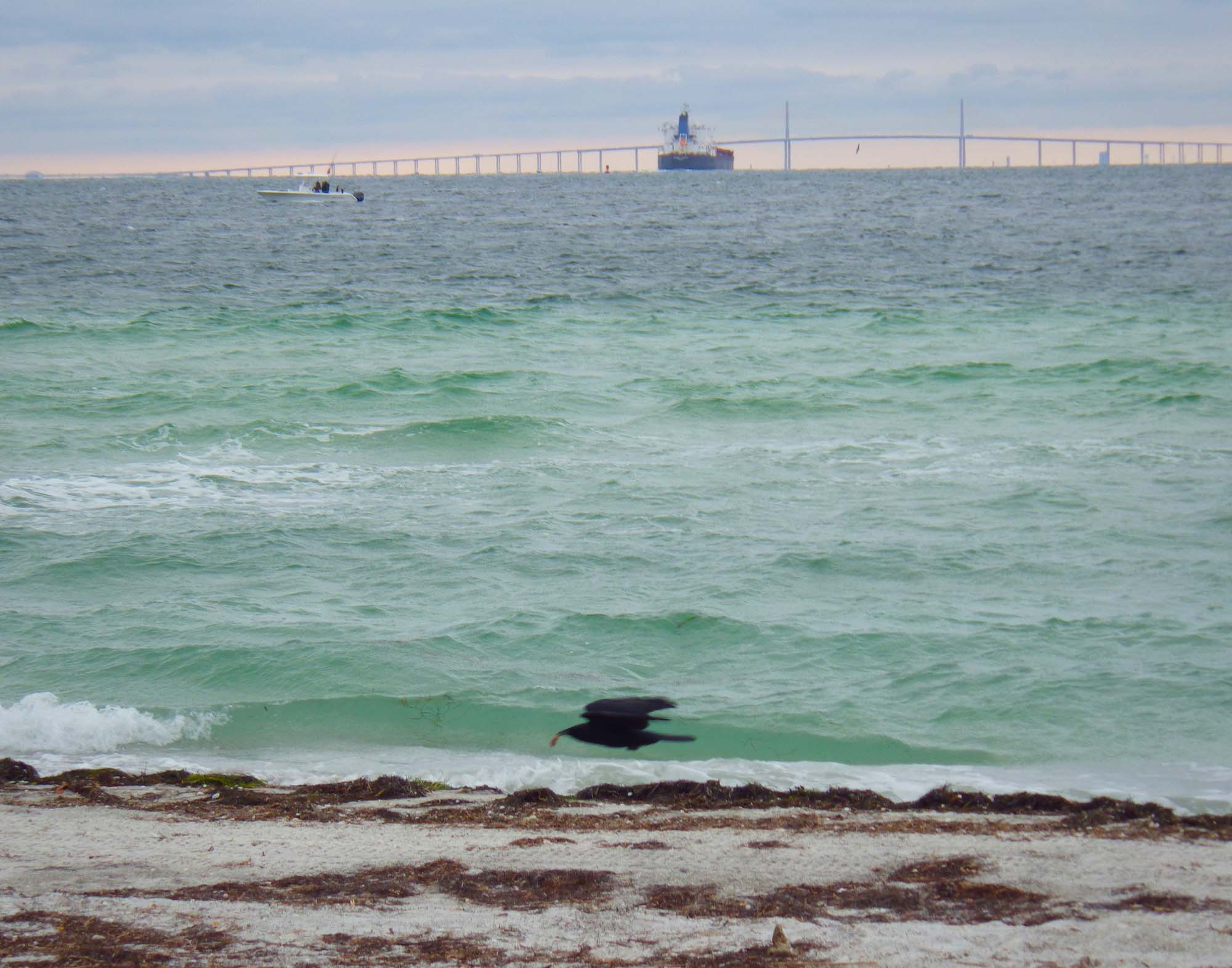 We set off across Tampa Bay. Overnight, the wind had shifted and was now mercifully with us. It pushed us along with 3-4 foot waves—just enough to keep the trip across the Bay interesting.