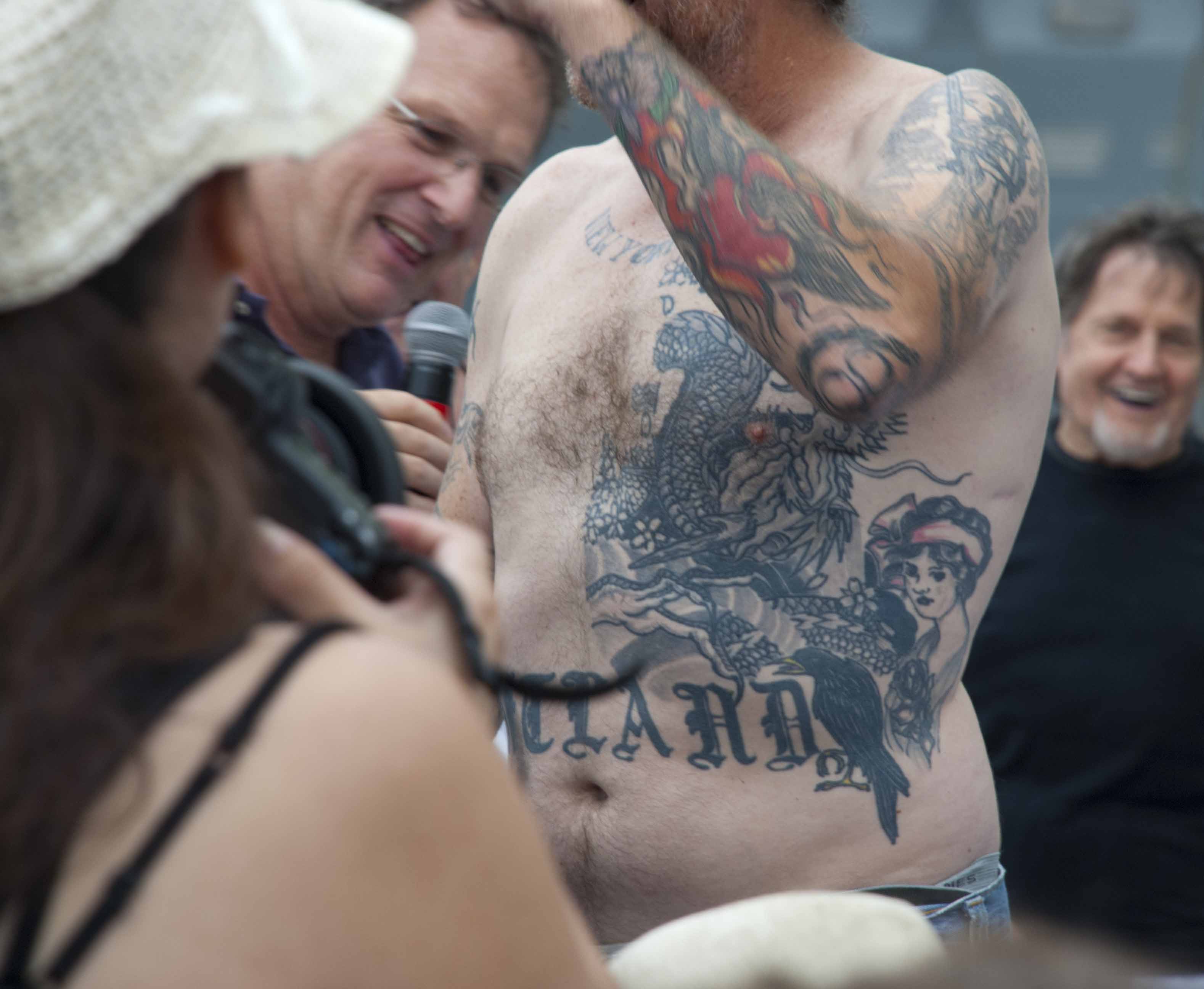 Inspecting the decorations at the 2012 and 2013 Tugboat Races—