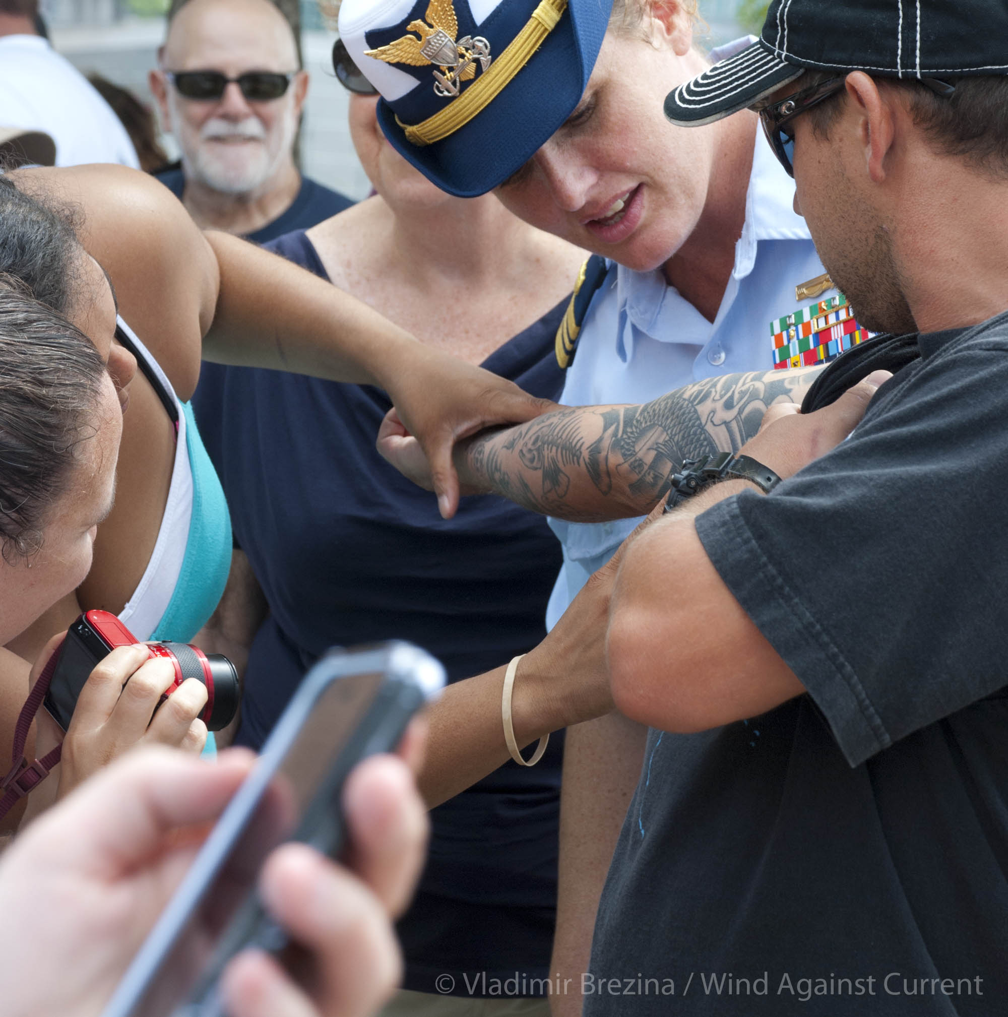 The look on the female coast guard officer’s face makes me wonder… did you ever get a photo of that rather, ahem, outre’ tattoo that I seem to recall? Speaking of nipples, I think it was a buxom mermaid…