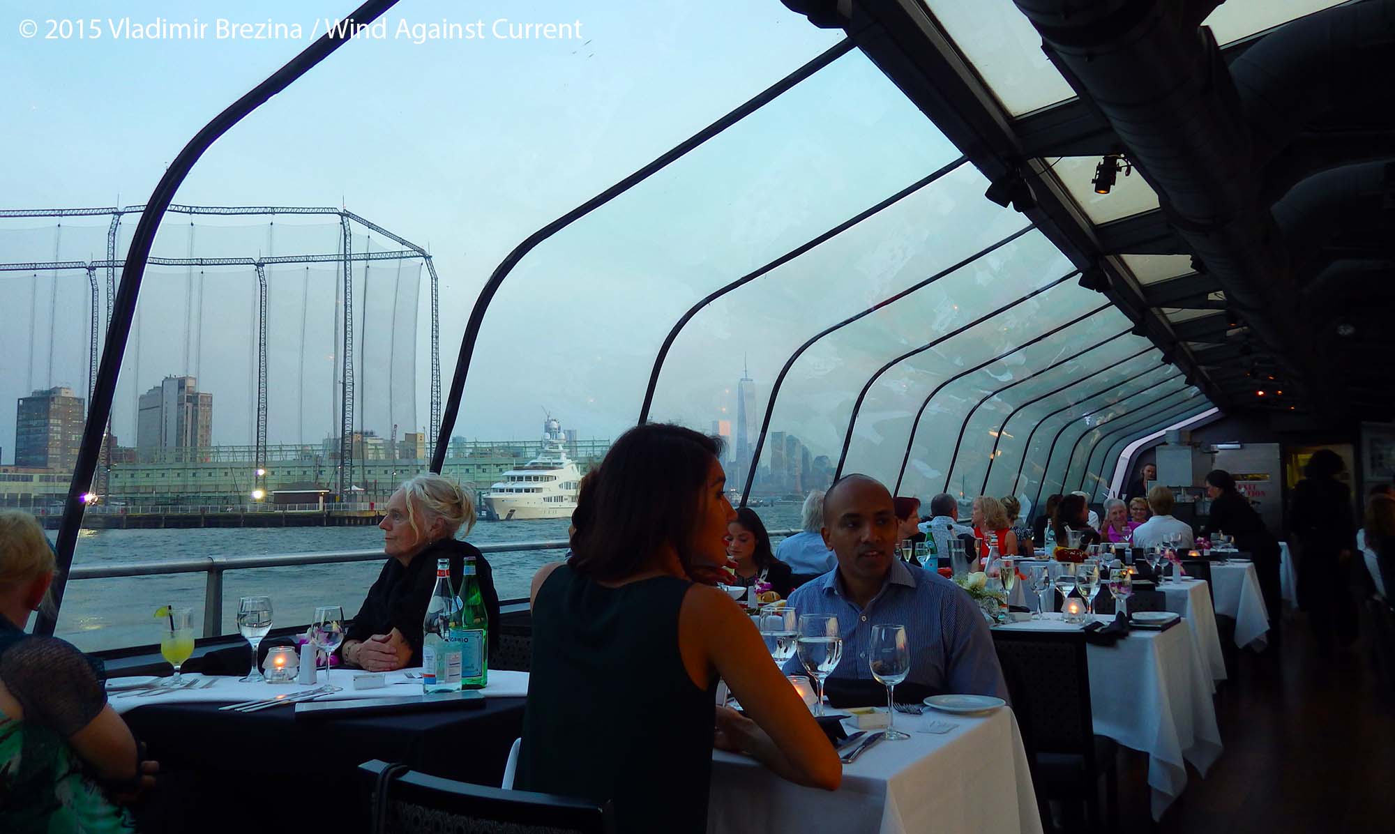The company says that the Celestial was indeed modeled after the dinner boats that one sees in European waterways—Paris does come to mind! The Celestial is basically a flat, floating restaurant with huge windows that provide a great view. There are plenty of more traditionally shaped boats in New York Harbor that also do dinner cruises, but the experience there isn’t quite the same…