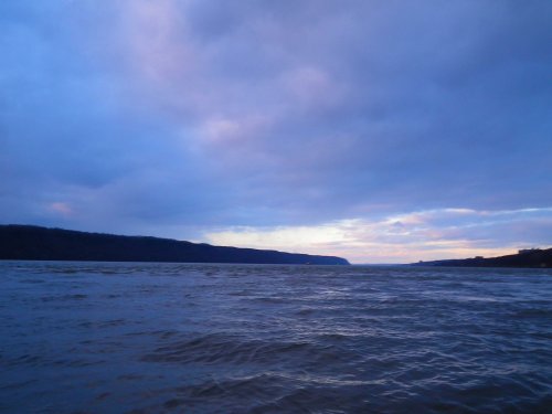 Reached Peekskill around 3:30 p.m. Relieved to see no ice in Peekskill Bay. Lazed about on the water until sunset (at 4:40 p.m. or so): colorful, interesting cloud formations but not as spectacular as I hoped. Talked with old couple out for a walk that I talked with here last year. Confirmed no ice here yet this winter. Took 5:19 p.m. train back to New York City.