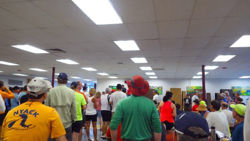 The early-morning start in the gym at Gloucester High School. The boats had been loaded and were in place. We were at the captain’s meeting at Gloucester High School, edgy and nervous about the day ahead. But there was plenty of “hurry-up-and-wait” time to chat with fellow contestants, sip coffee, and worry…