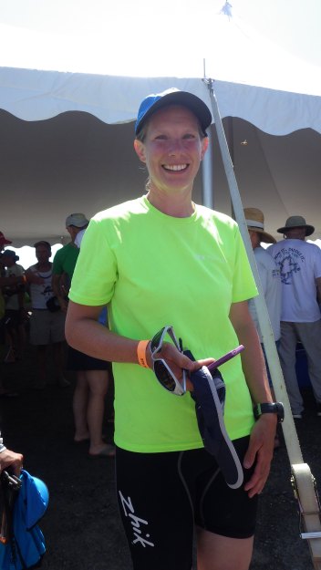 A few minutes later, Jean appeared. “Look, you got bling!” she said. It was true. I’d come in third, despite my poor time. B. had won our class (with a brilliant time around three hours and forty minutes!) and Jean had won hers.