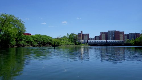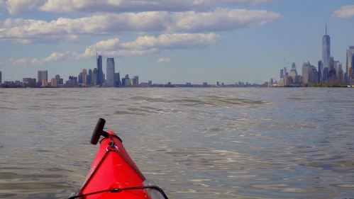 We smiled and waved goodbye to the little family, and set off into the slight chop. As we headed south out into the river, the chop increased. We were going against wind and current; nothing particularly strenuous, but new-ish conditions to us in the surfskis. Moreover, following V’s lead, I’d adjusted my wing paddle to its shortest possible length, with a strong feather angle, and I was still familiarizing myself with how it handled.