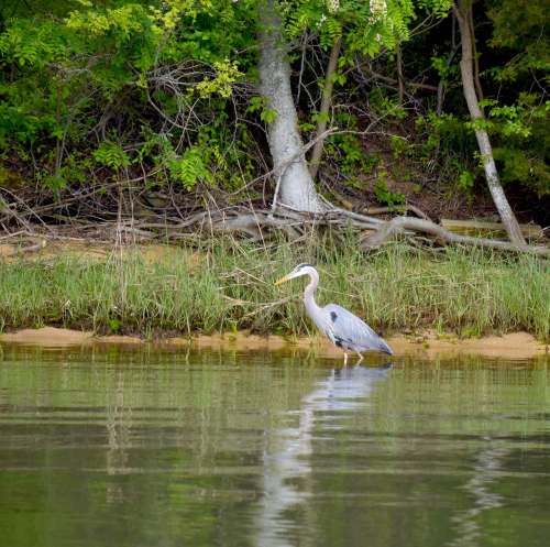 The sun was slipping towards the tree-covered hills that lined the dark, navy-blue water. The air was fresh, silent except for the occasional chirping of birds, including the “weep-weep” of the ospreys and the deep grunt of the great blue herons*.