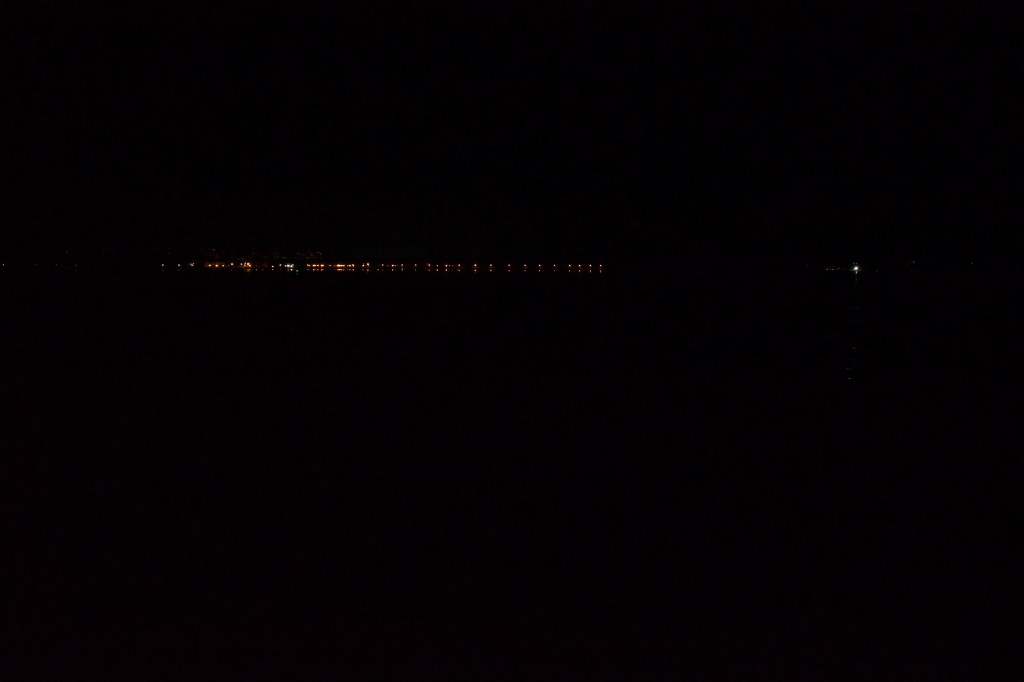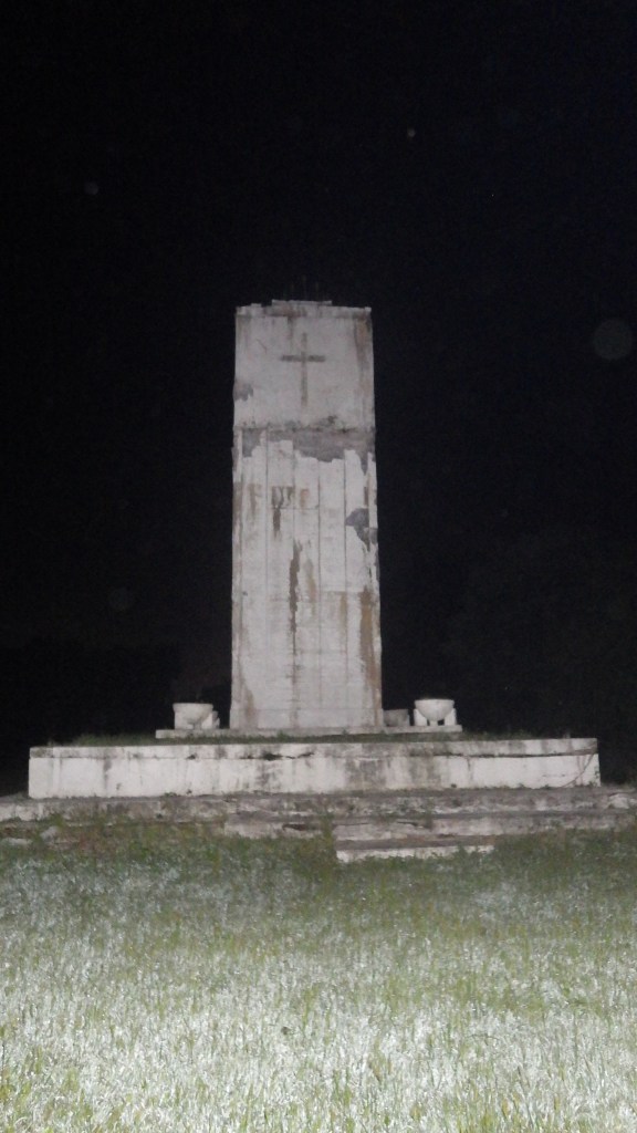We stopped to admire a square white obelisk set on a platform, inscribed with a white cross. It was the peace monument, erected by prisoners and staff in 1948 to commemorate those interred on the island (see this account for a brief description.) We continued on. The night swirled with strange gusts of air: at one moment it was cool enough to make our skin prickle, the next warm as if from an oven opening.