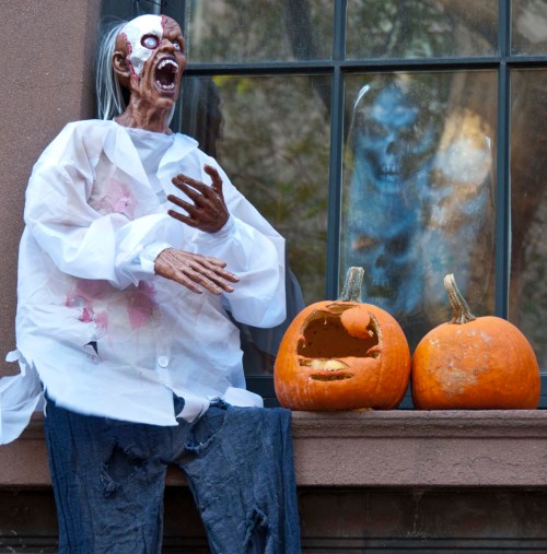 The Upper East Side of Manhattan takes Halloween very seriously. Halloween is still some days away, but decaying bodies, chained skeletons, and giant black spiders have festooned the area for weeks. The block of 92nd Street between Madison and Park Avenues is particularly worth seeing… here are some photos from that block and a couple of adjacent ones.