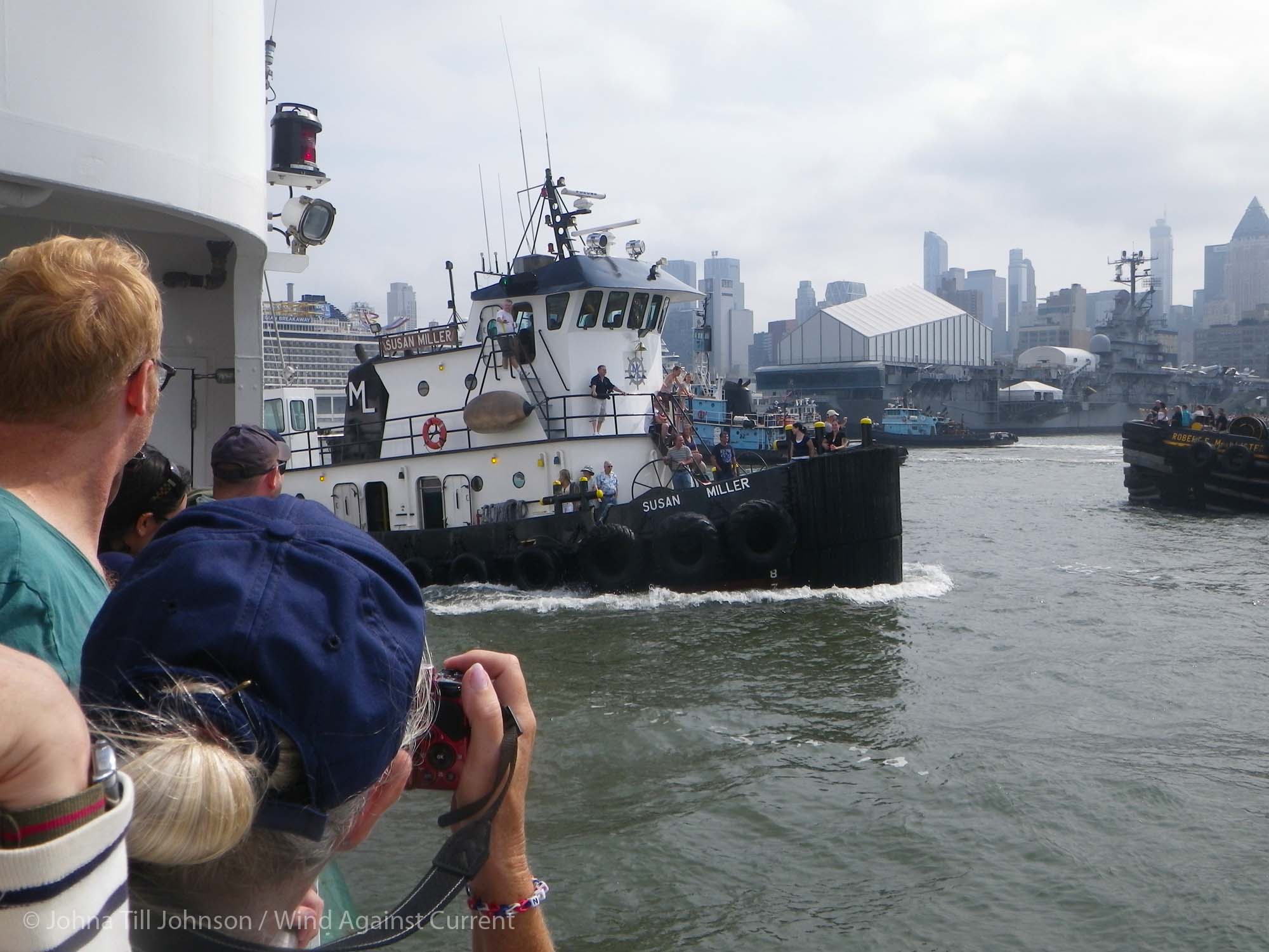 Well, of course! We both love everything maritime, and tugboats in particular. And we’d talked for a while about wanting to see this event—the Great North River Tugboat Race & Competition, hosted each Labor Day weekend by the Working Harbor Committee, in which a dozen or more NYC-area tugboats parade up the Hudson, race, and then engage in various contests (pushing contests, line tosses, and who knows what else). And it was all happening this weekend!