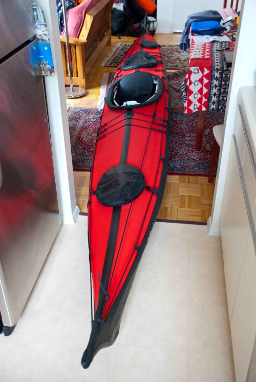 My last post showed my new 17.5-foot-long kayak completely filling our New York City apartment. And quite a few readers wondered how I was going to get it from the 17th floor down to the street and then to the water…