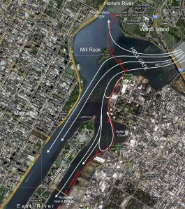 He recognized it immediately from my description: “That’s Hell Gate Bridge,” he said. An odd name for a structure of such harmonious beauty! I hadn’t heard of Hell Gate before, and my dad explained it was where the Harlem River joined the East River. Hell Gate was a treacherous body of water characterized by converging currents and occasional whirlpools that had been the doom of hundreds of ships over the past several centuries.