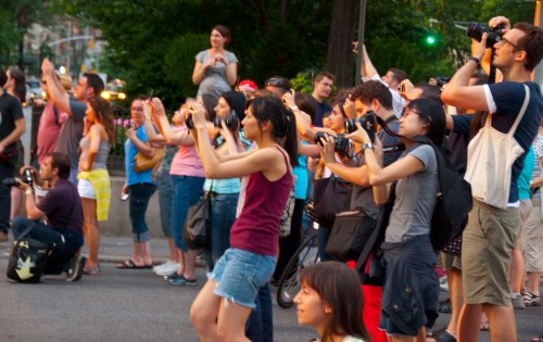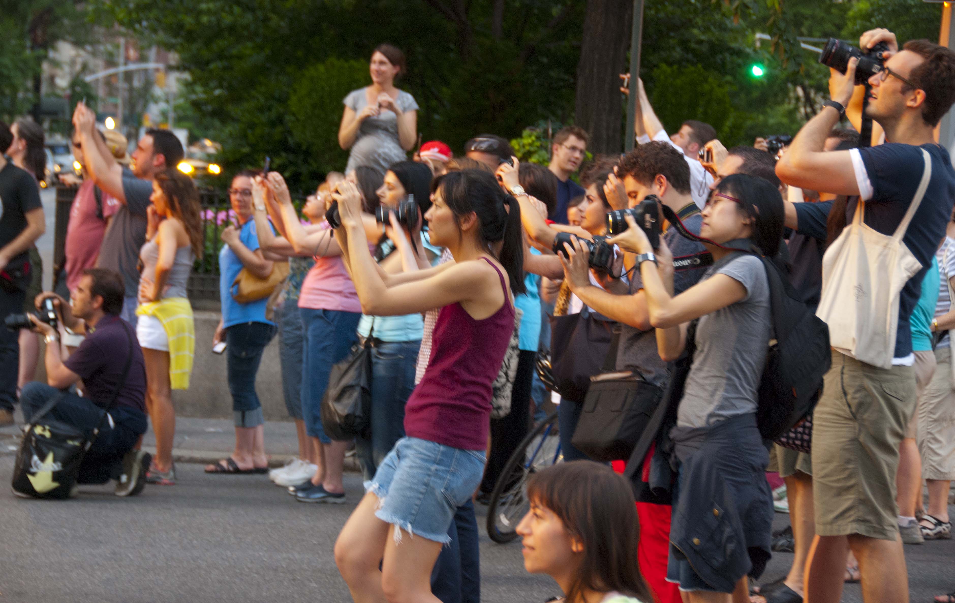 Crowds of photographers gather as the magic moment draws near. What are they waiting for?
