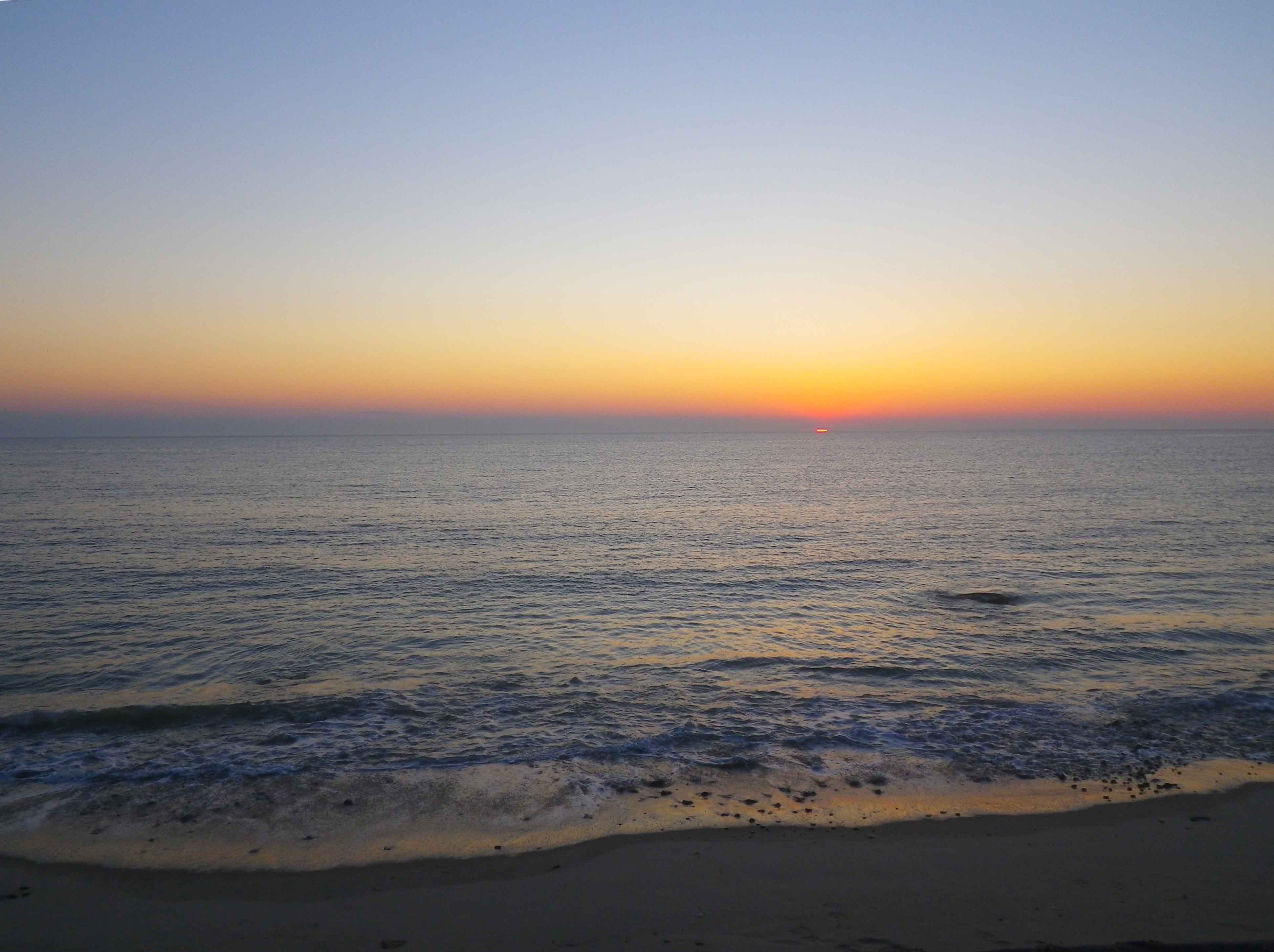 But just at the moment of sunset, the sun appeared through the mist! I got a few photos.