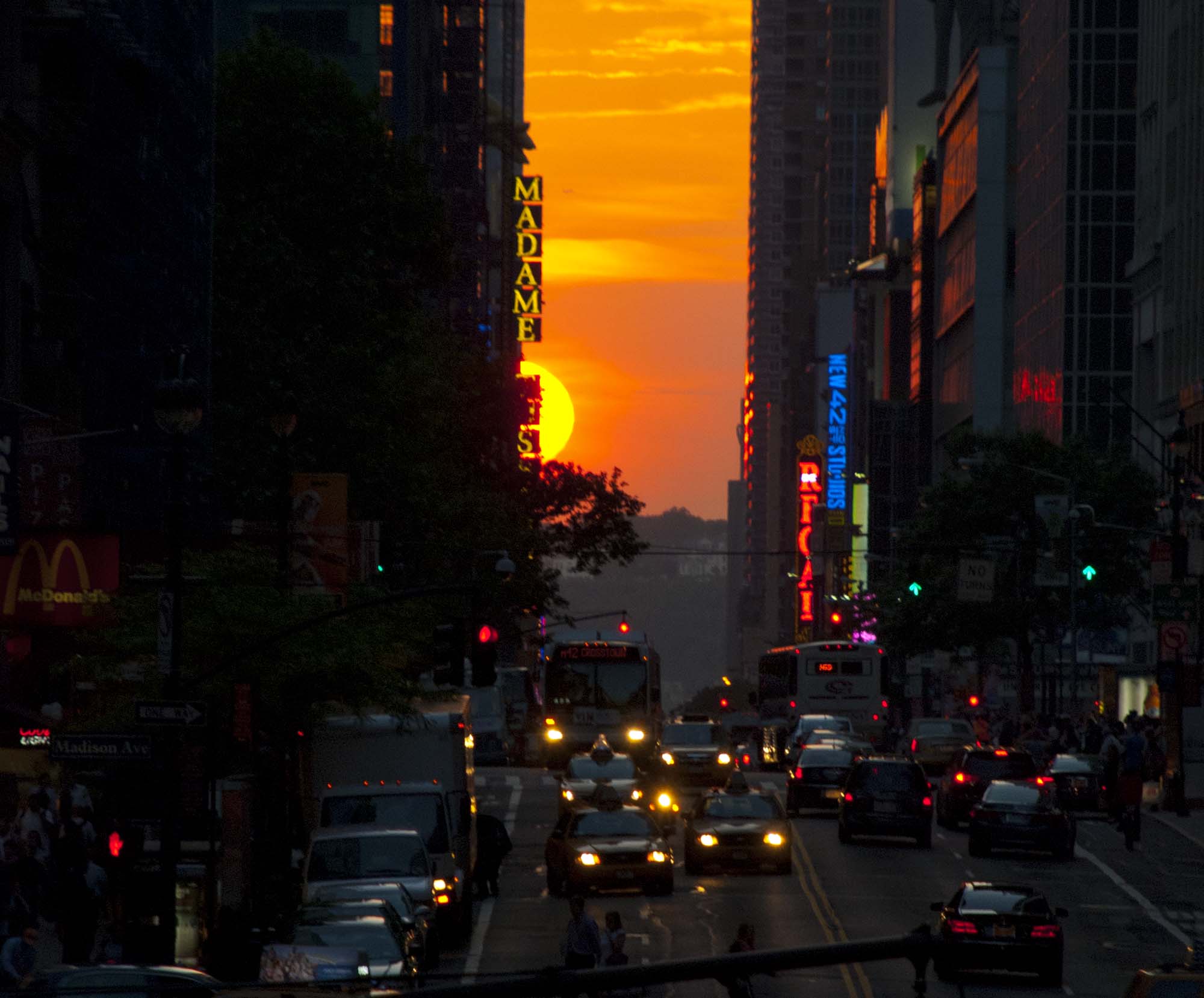 Manhattanhenge is the phenomenon for which, future archeologists might well conclude, the rectangular street grid of Manhattan was built. As Neil deGrasse Tyson, the astronomer who has spread the word about Manhattanhenge, writes: